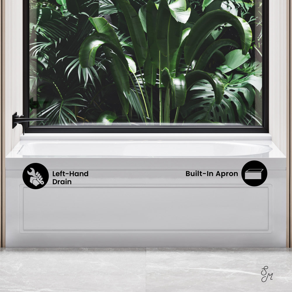 - Built-in apron: Bathtubs with built-in aprons streamline installation with a preinstalled front avoiding the need for tile.