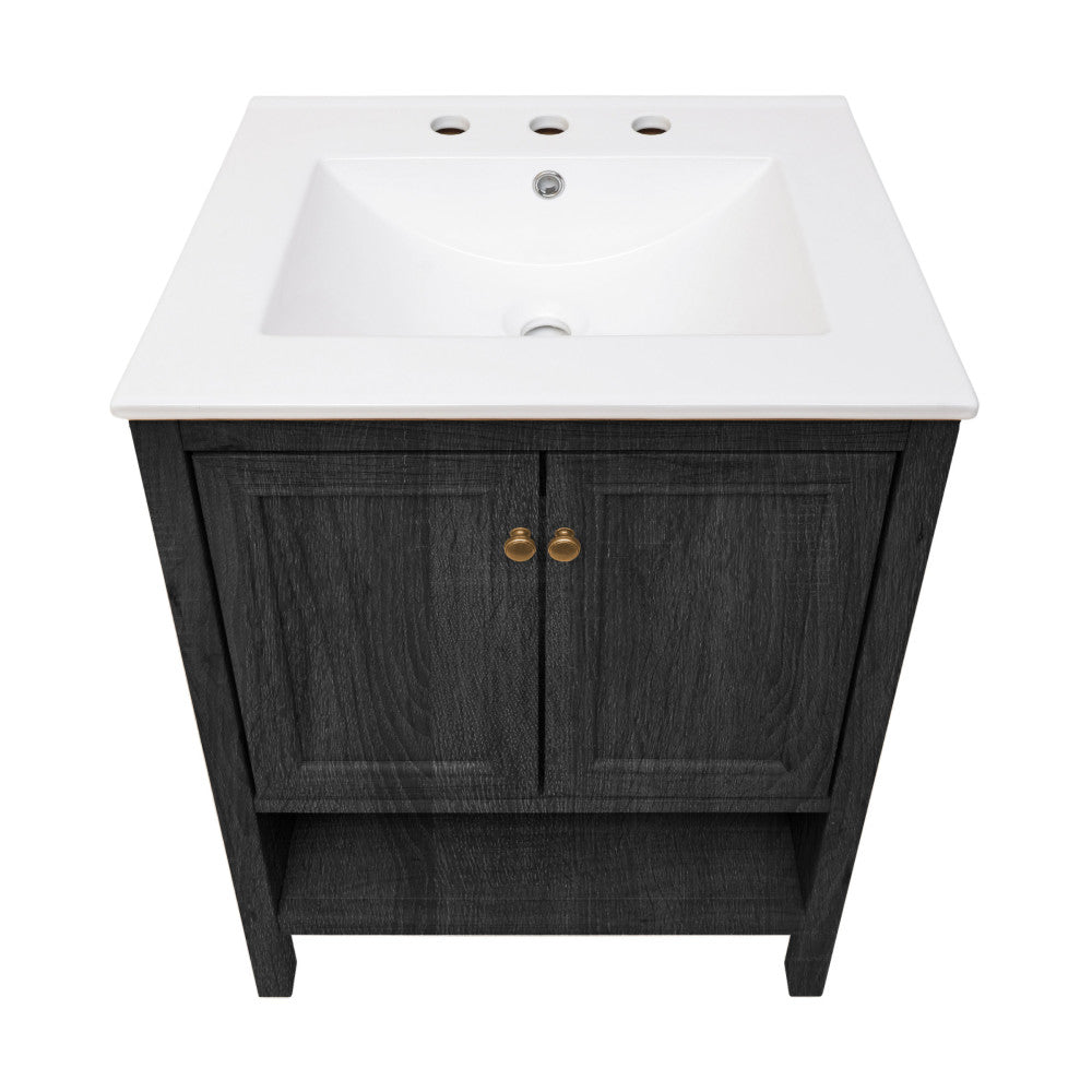 Chateau 24" Freestanding Bathroom Vanity in Black Oak with 3-Hole Widespread Sink Top