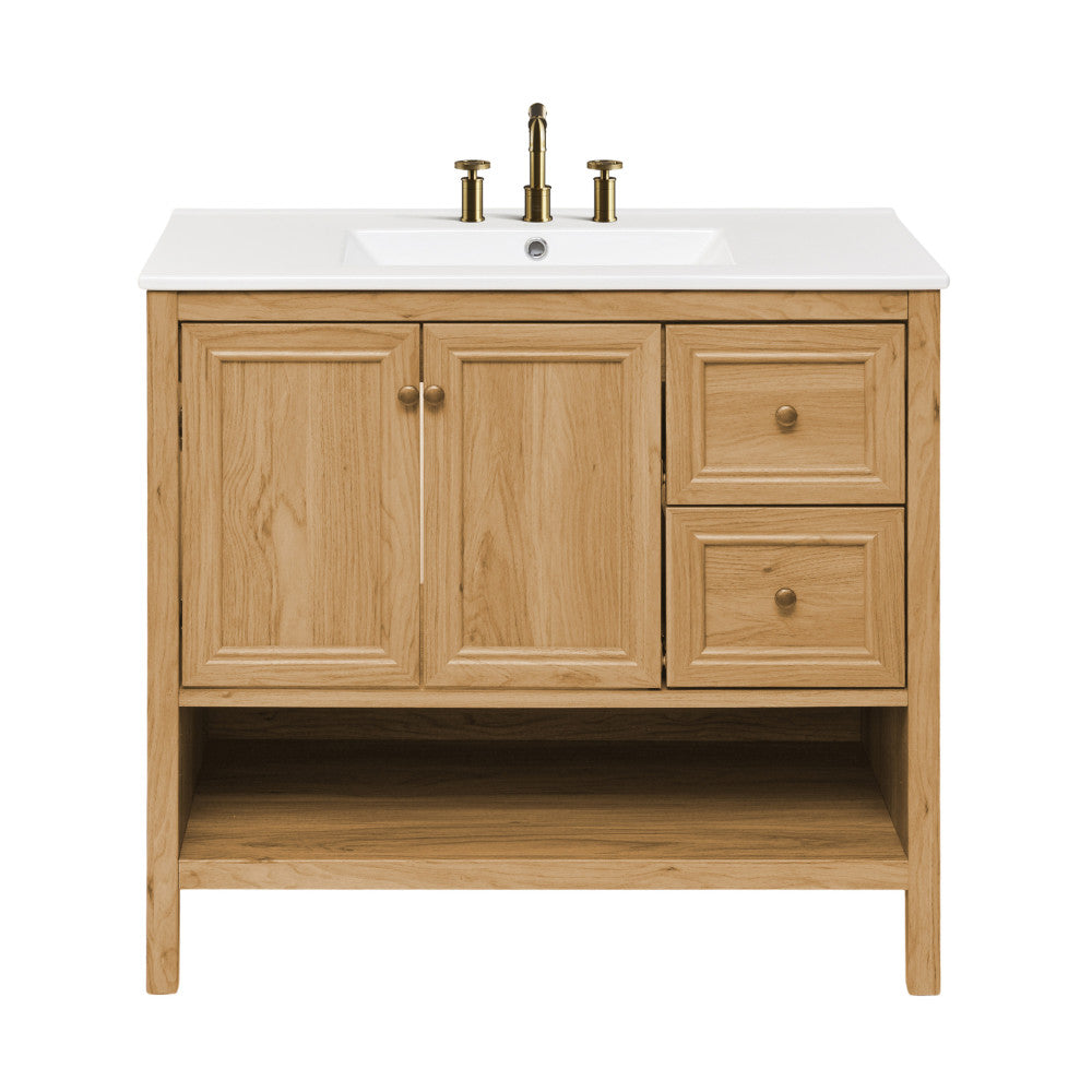 - 2 Doors 2 Drawers 1 Open Shelf: Vanities offering two soft closing doors, two drawers and one open shelf enhances your space with slam-free technology, additional storage space and creates an upscale appearance