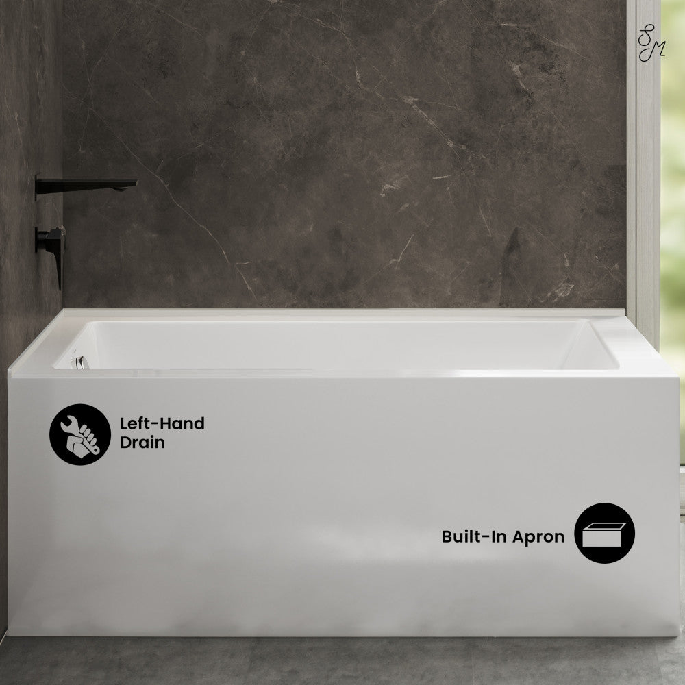 - Built-in apron: Bathtubs with built-in aprons streamline installation with a preinstalled front avoiding the need for tile.