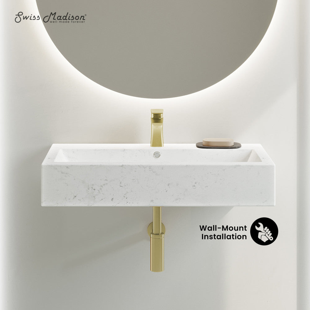 Voltaire Wide Rectangle Wall Hung Sink in Static Marble