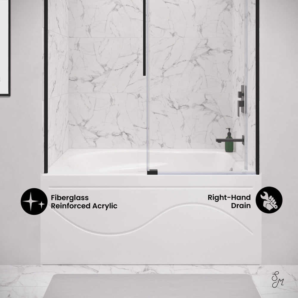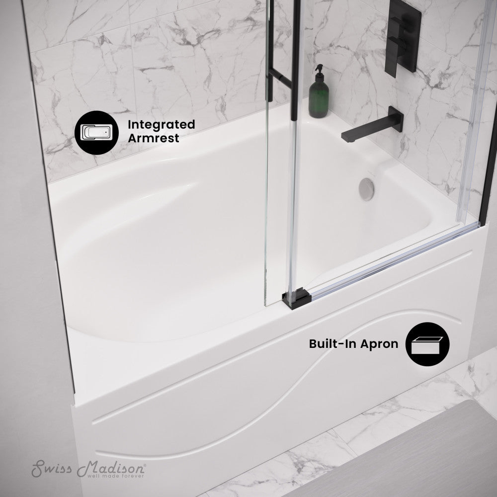 - Built-in apron: Bathtubs with built-in aprons streamline installation with a preinstalled front avoiding the need for tile.
