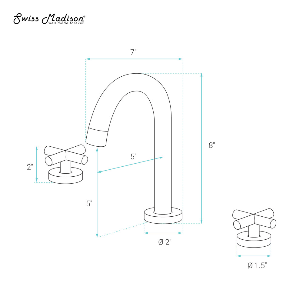 - Two Handle: Two lever handles offer separate control of hot and cold water.