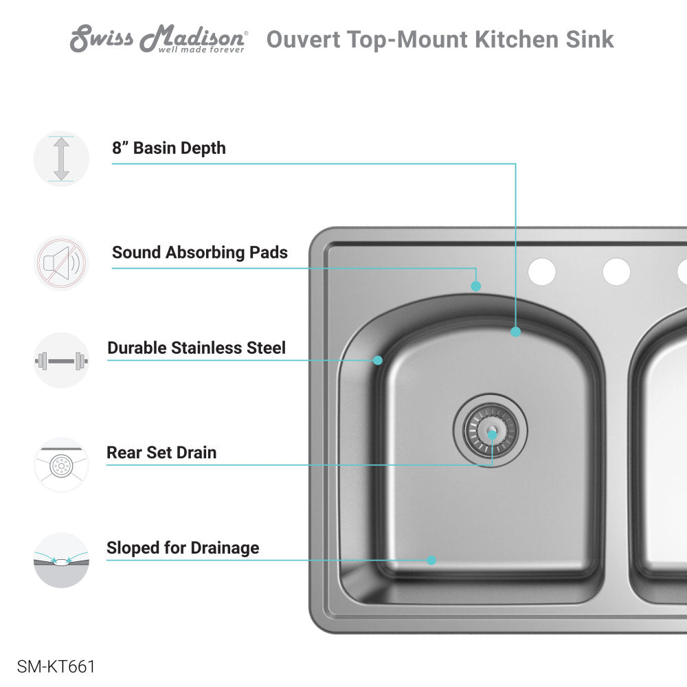 Ouvert 33 x 22 Stainless Steel, Dual Basin, Top-Mount Kitchen Sink