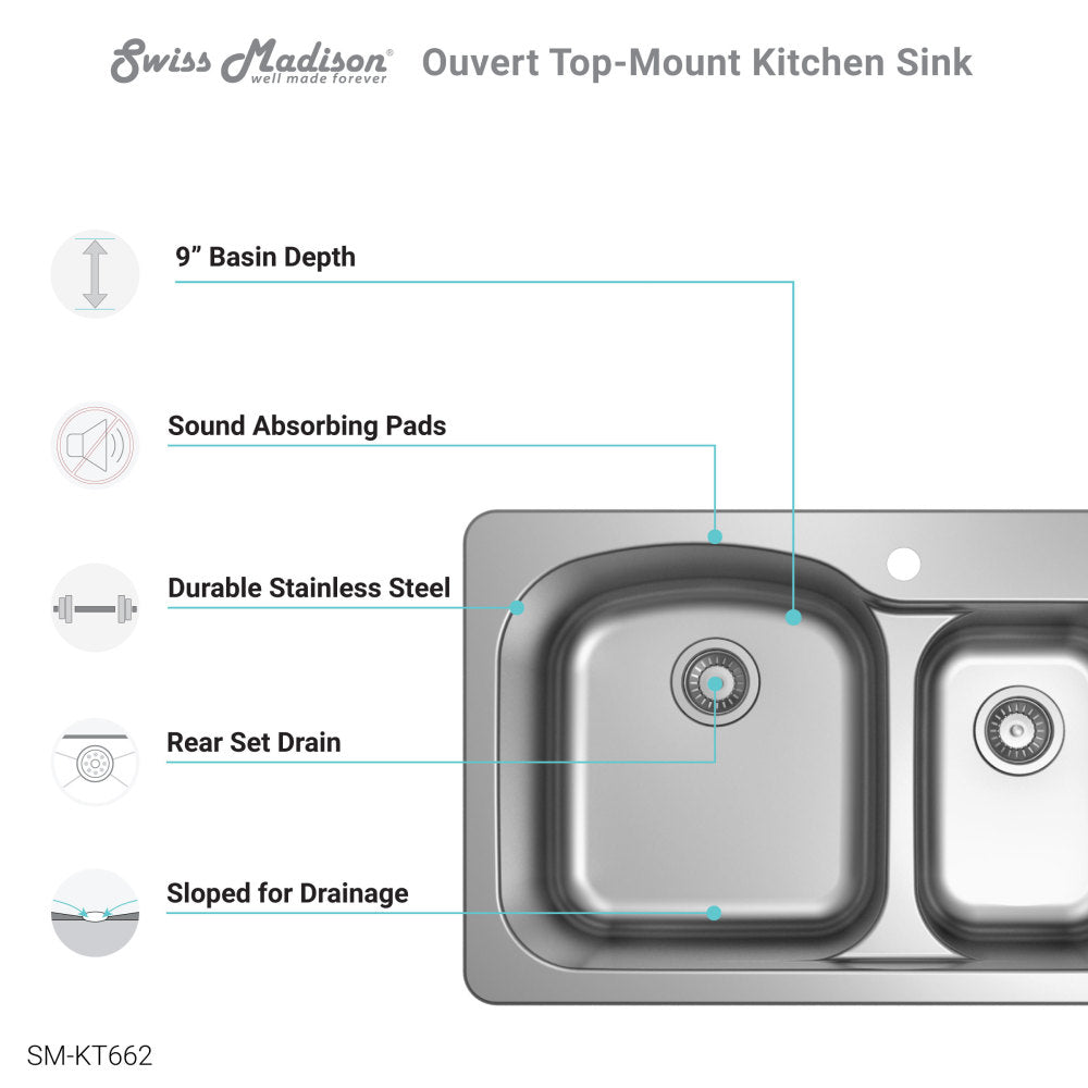 Embrace open and inviting designs with the Ouvert collection, fostering a sense of connection and freshness. Merge convenience and style with our top-mount kitchen sinks, designed for easy installation and enduring beauty. Offered in stainless steel with a polished finish.