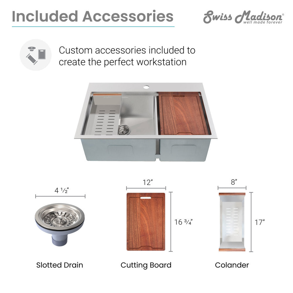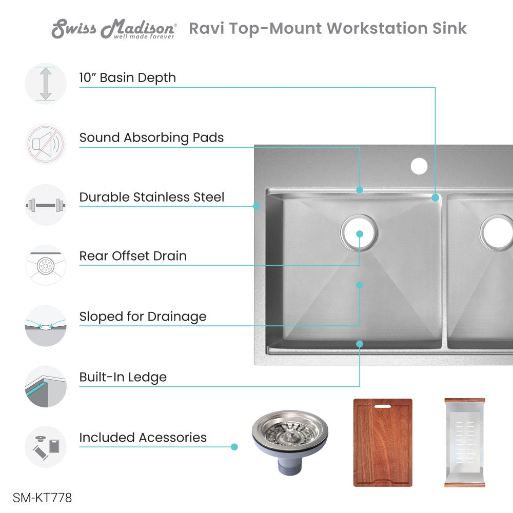 Delight in the Ravi collection, where exquisite designs elevate the functionality and aesthetics of your home. Transform your kitchen sink into a hub of culinary creativity with our workstation sinks, offering integrated accessories for ultimate functionality. Offered in stainless steel with a polished finish.