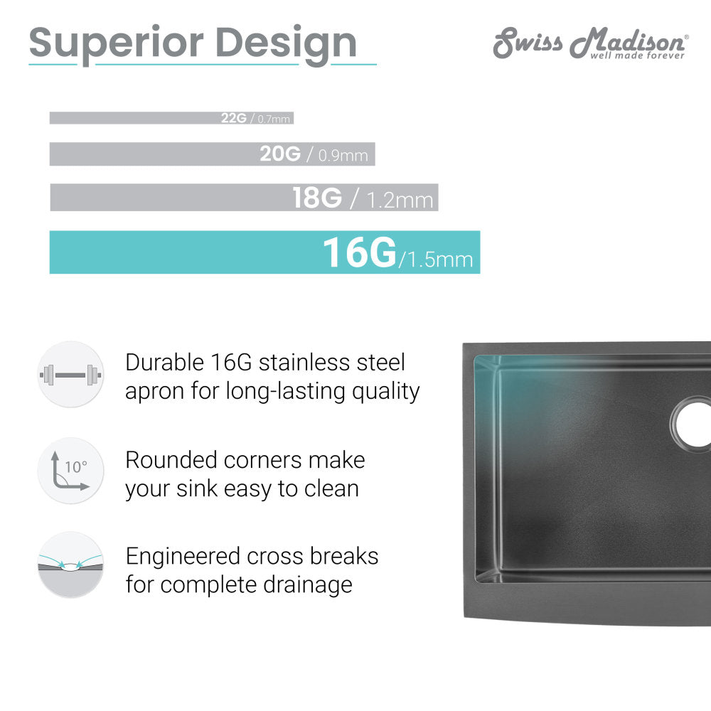 Rivage 30 x 21 Stainless Steel, Single Basin, Farmhouse Kitchen Sink with Apron in Black