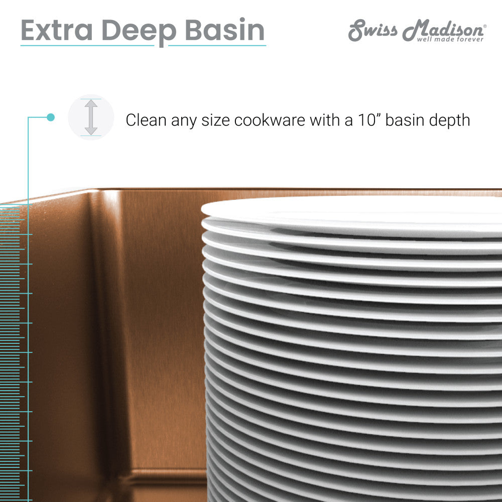 Immerse yourself in coastal tranquility with the Rivage collection, embracing relaxed elegance and natural textures. Infuse rustic charm and modern convenience into your kitchen with our farmhouse sinks, blending traditional appeal with contemporary utility. Offered in stainless steels with a rose gold finish.