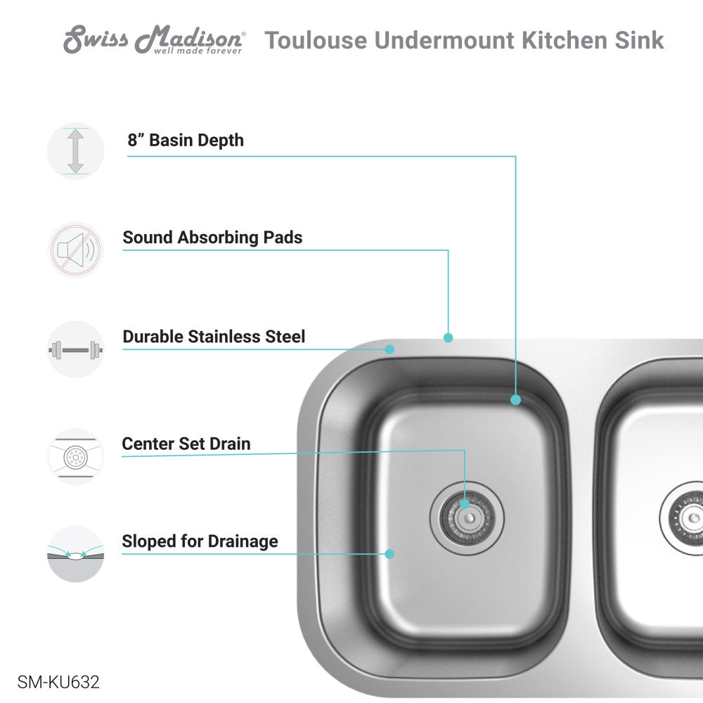 Experience the charm of provincial France with the Toulouse collection, where vintage elegance meets functional design. Elevate your kitchen aesthetics with our undermount sinks, showcasing sleek design and maximum counter space. Offered in stainless steel with a polished finish.