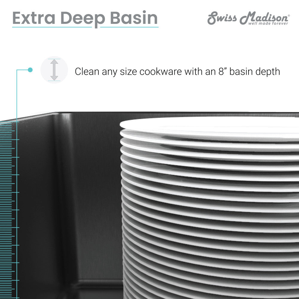 Discover the art of curves and lines with the Tourner collection, where fluid designs redefine contemporary aesthetics. Elevate your kitchen aesthetics with our undermount sinks, showcasing sleek design and maximum counter space. Offered in stainless steel with a black finish.