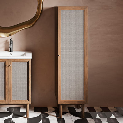 Spacious linen cabinets offering durable, space-saving bathroom storage.
