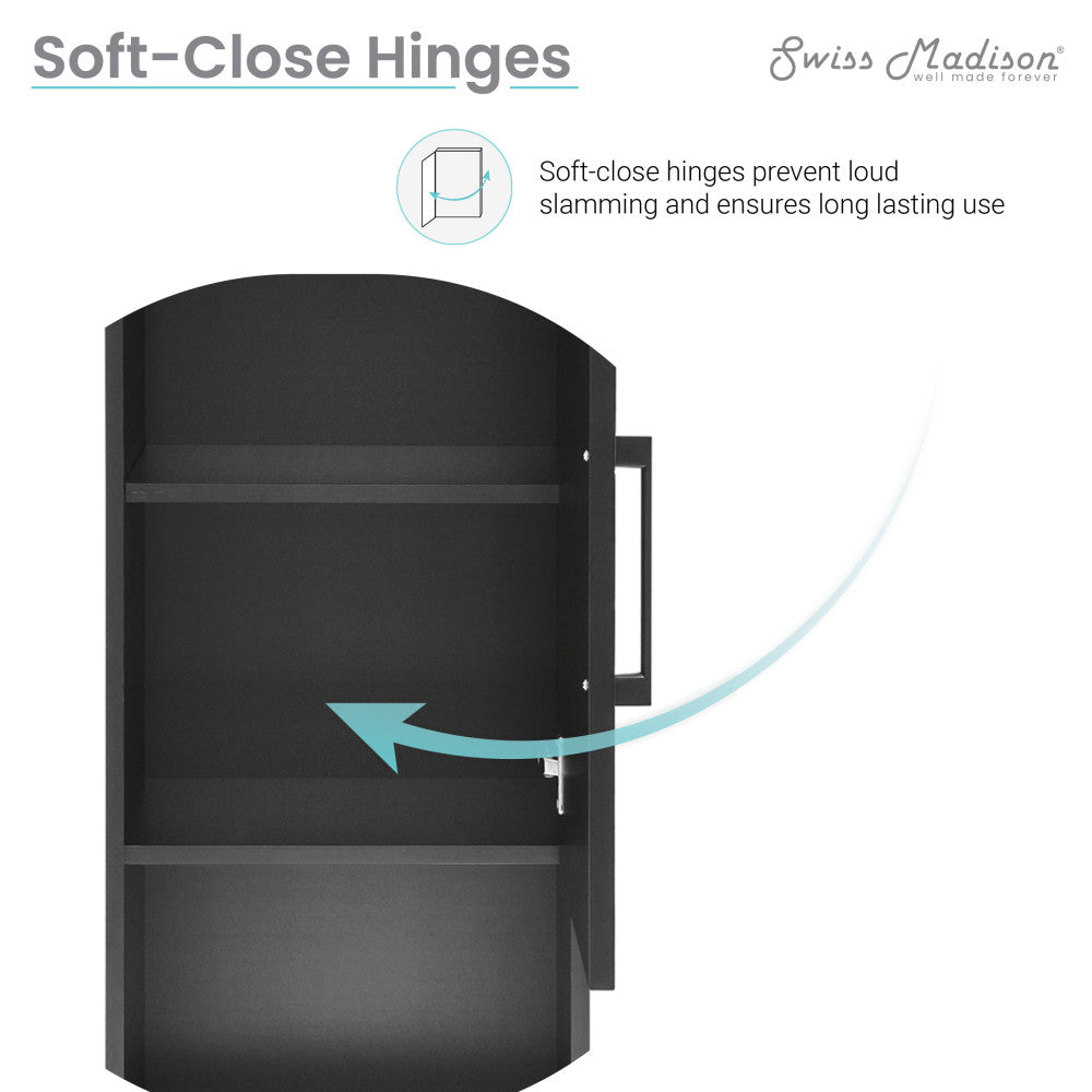 - Open Shelf and Closet: The cabinet door has soft-close hinges and provides additional open and closed storage space.