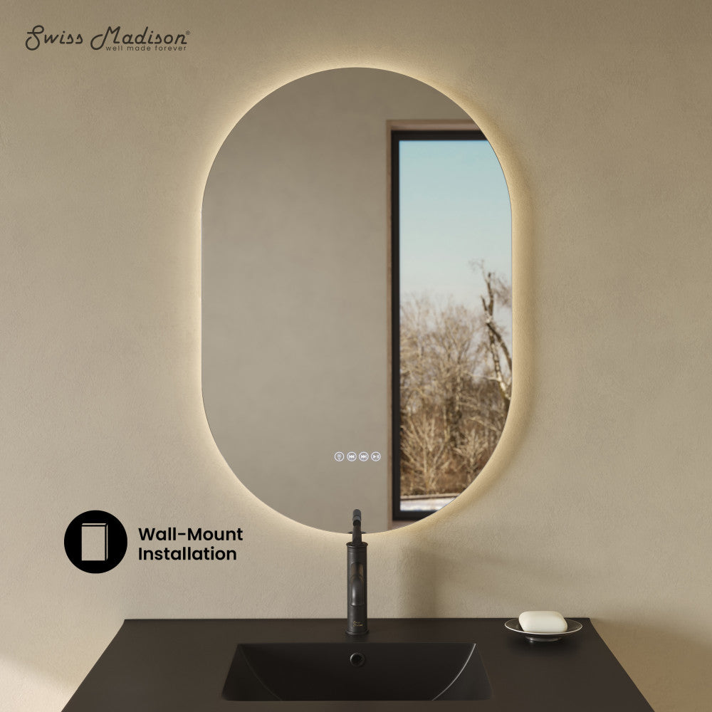Aura 24" x 36" Pill Shaped LED Anti-Fog Smart Mirror with Bluetooth