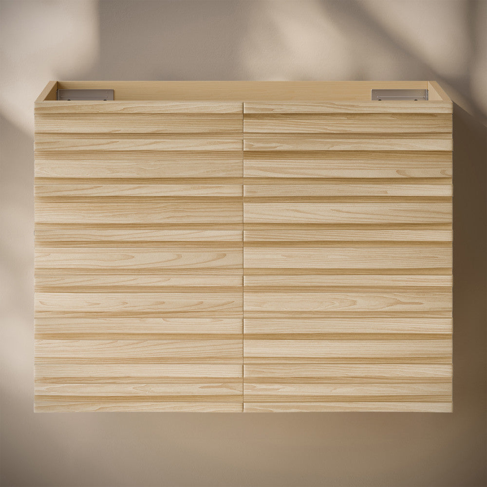 Immerse yourself in the gentle flow of design with the Cascade collection, where fluid lines and captivating forms create an atmosphere of tranquil beauty. Tailor your bathroom to perfection with our cabinets-only vanities, offering customizable vanity top solutions to integrate with your design vision. Offered in natural oak.