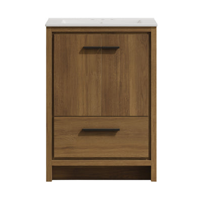 Virage 24" Freestanding Bathroom Vanity in Brown Oak with 3-Hole Centerset Sink Top