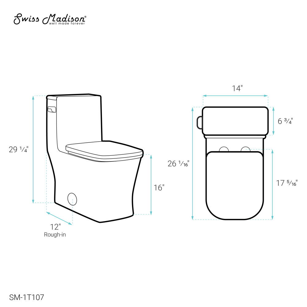 Select where you want the flush button or lever located. Side flush is on the right-hand side of the tank, left side is on the opposite, dual top offers two buttons on top, and touchless uses sensor technology. Swiss Madison Toilet Guide