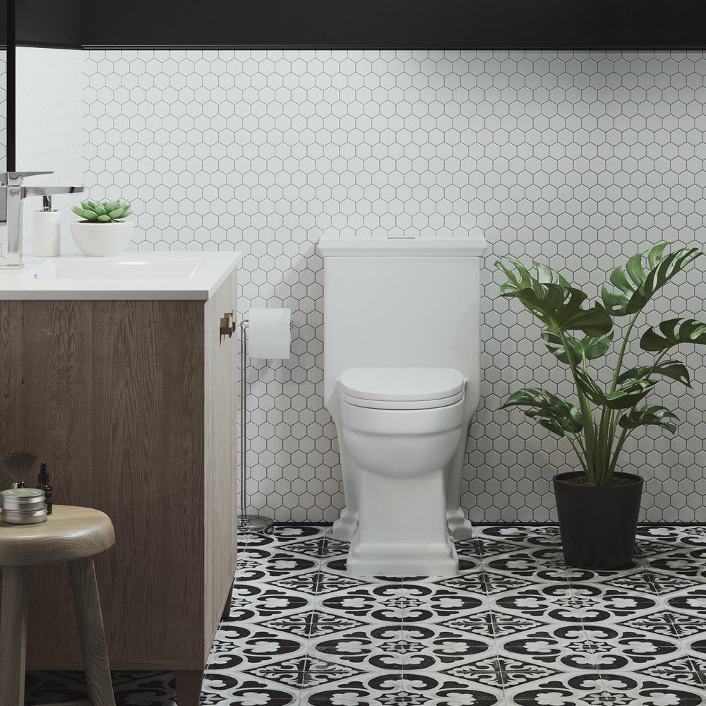 - Fully Glazed and Skirted Trapway: The skirted trapway offers hidden plumbing creating an elevated and luxurious design with a smooth finish for easy cleaning. The fully glazed trapway prevents clogs and keeps water flowing freely.