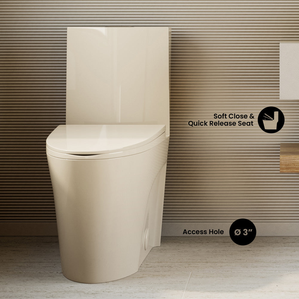 The St. Tropez One-Piece Elongated Toilet in bisque captures coastal sophistication with a powerful dual vortex flush. Its fully skirted design and soft-close seat combine style, performance, and comfort.