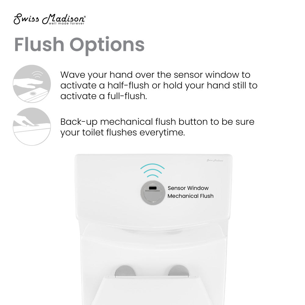 - Touchless Flush: Touchless flush is equipped with a motion sensor that detects hand wave to activate the flush to minimize contact for optimal convenience.