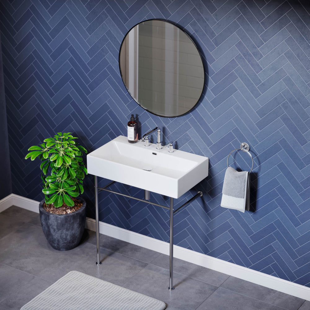 Claire 30" Console Sink White Basin Chrome Legs with 8" Widespread Holes