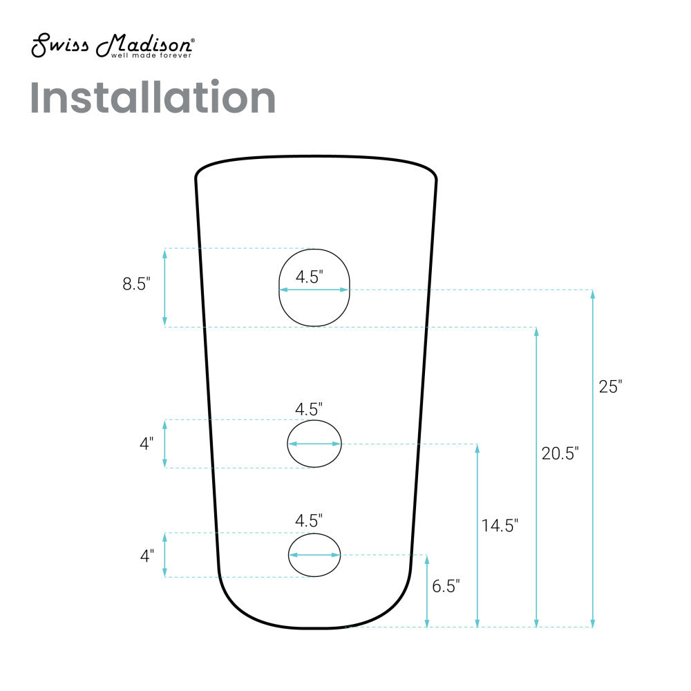 - Overflow: Equipped with an overflow that offers easy installation, spill prevention, and space-saving properties.