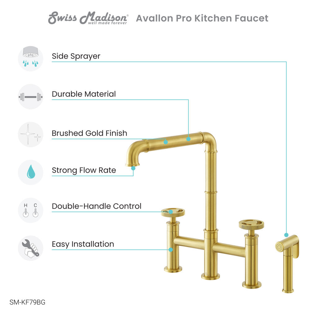 Avallon Pro Widespread Kitchen Faucet with Side Sprayer in Brushed Gold