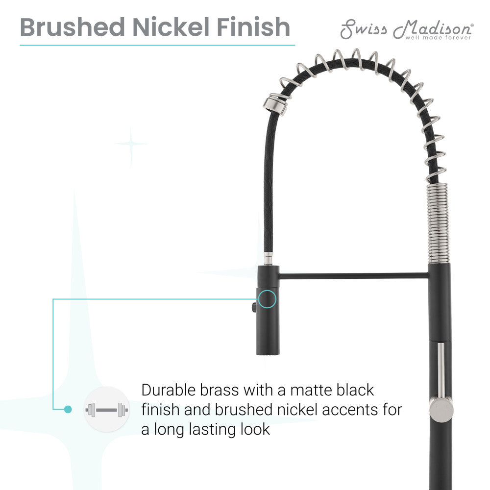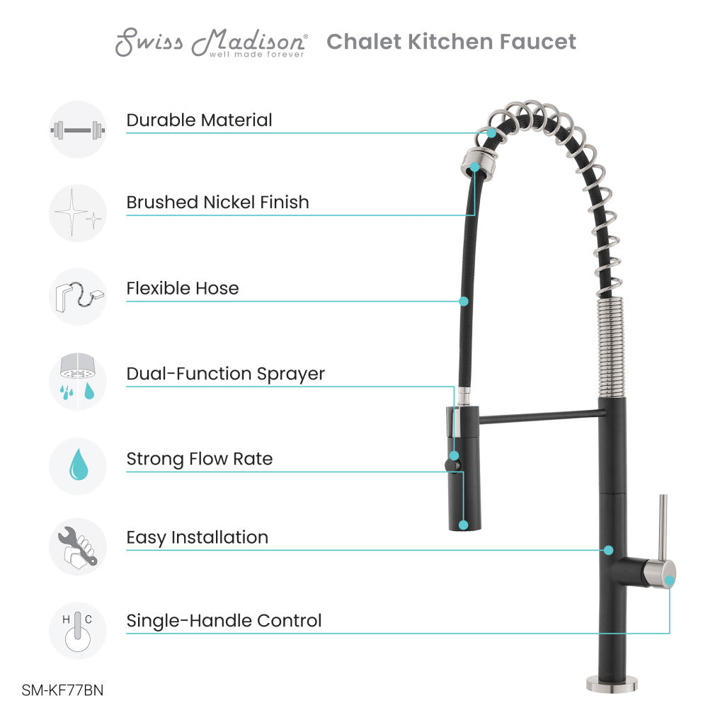 Chalet Single Handle, Pull-Down Kitchen Faucet in Brushed Nickel and Black