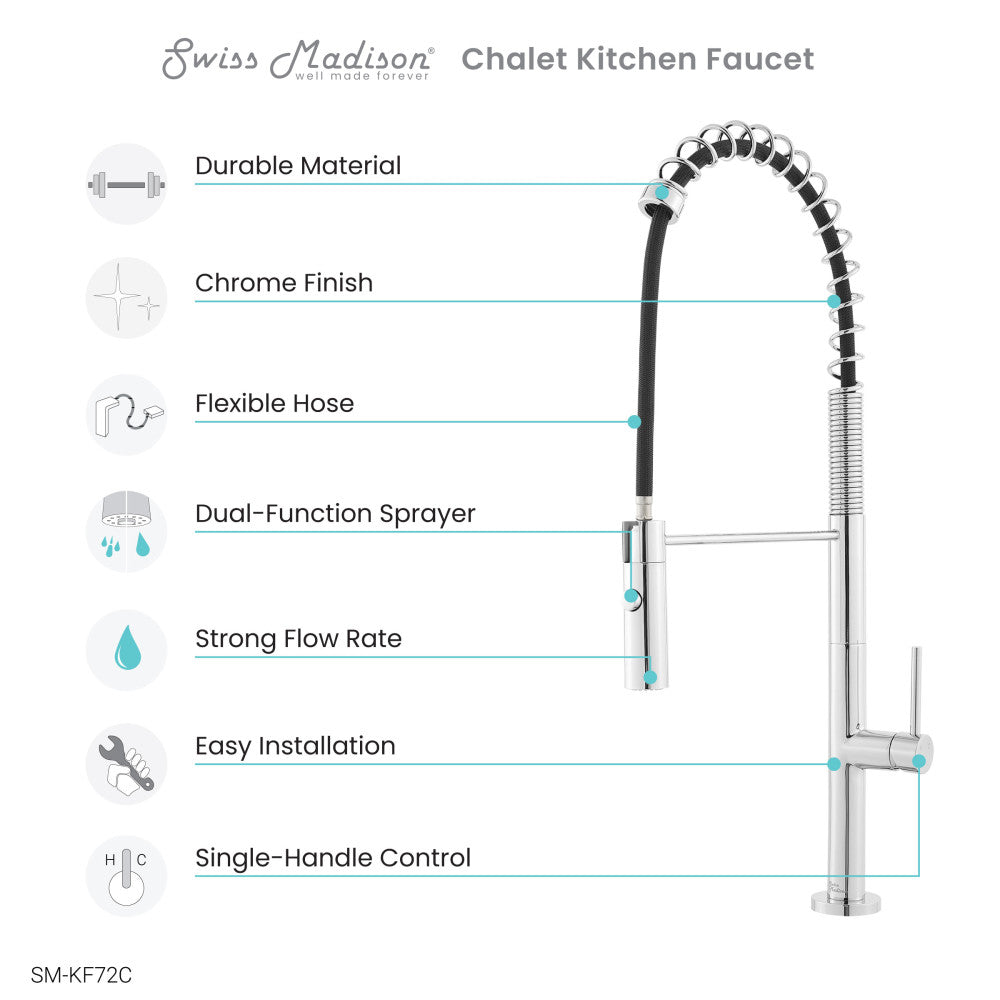 Create a cozy retreat with the Chalet collection, capturing the warmth and comfort of alpine aesthetics. Redefine your kitchen workflow with our pull-down faucets, offering flexibility and convenience for your daily tasks. Offered in chrome with a polished finish.