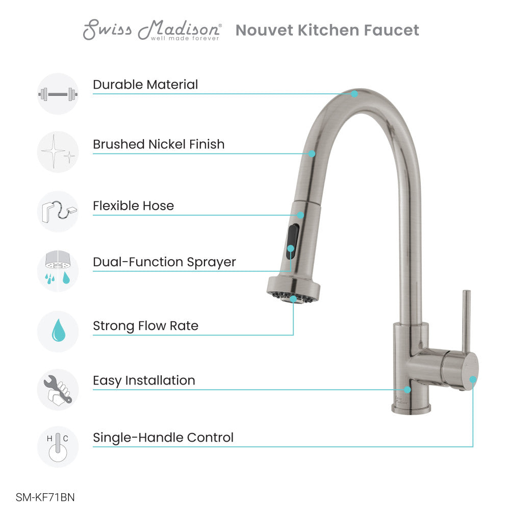 Embark on a new journey of style with the Nouvet collection, where innovative designs redefine the contemporary aesthetic. Redefine your kitchen workflow with our pull-down faucets, offering flexibility and convenience for your daily tasks. Offered in brushed nickel.