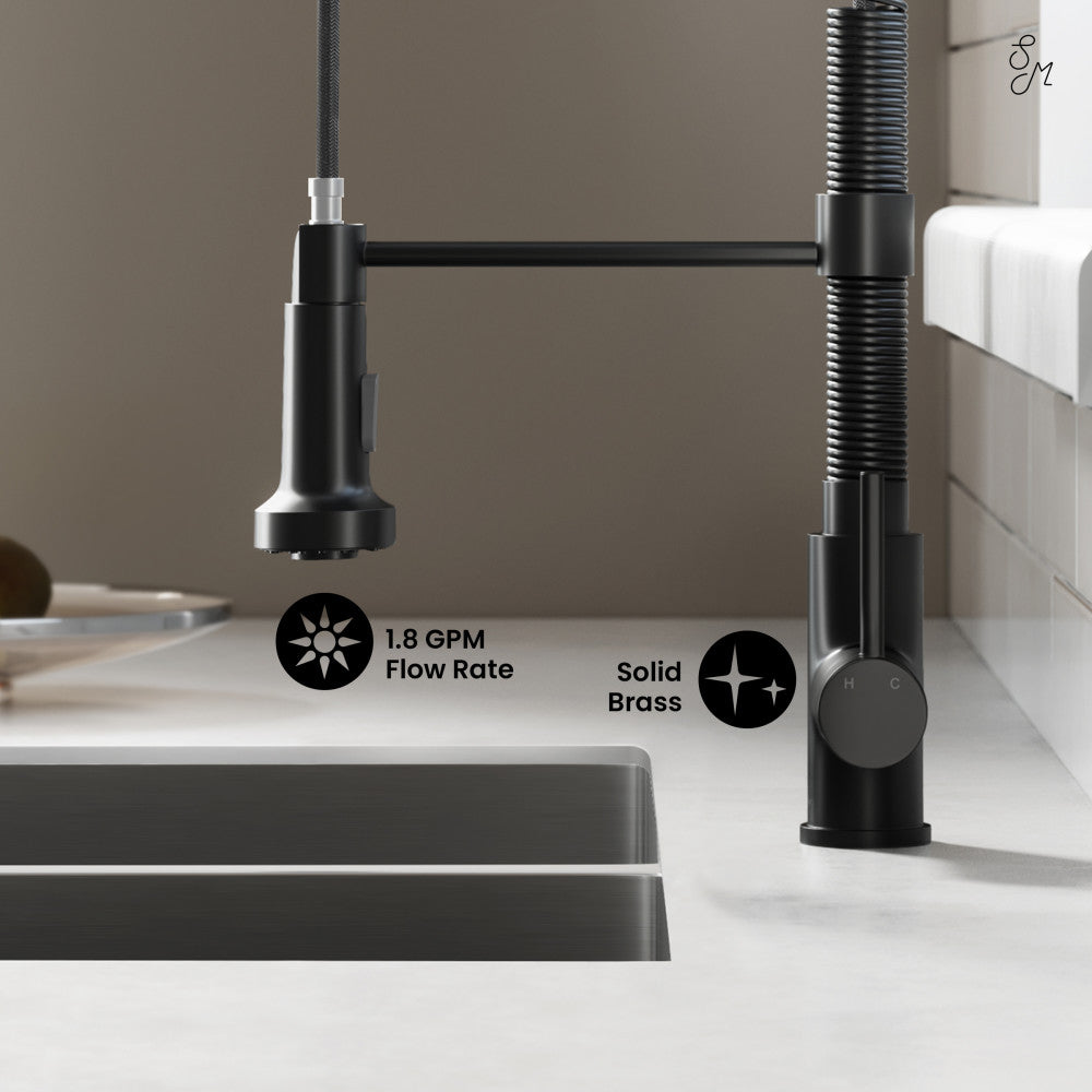 Embark on a new journey of style with the Nouvet collection, where innovative designs redefine the contemporary aesthetic. Redefine your kitchen workflow with our pull-down faucets, offering flexibility and convenience for your daily tasks. Offered in black with a matte finish.