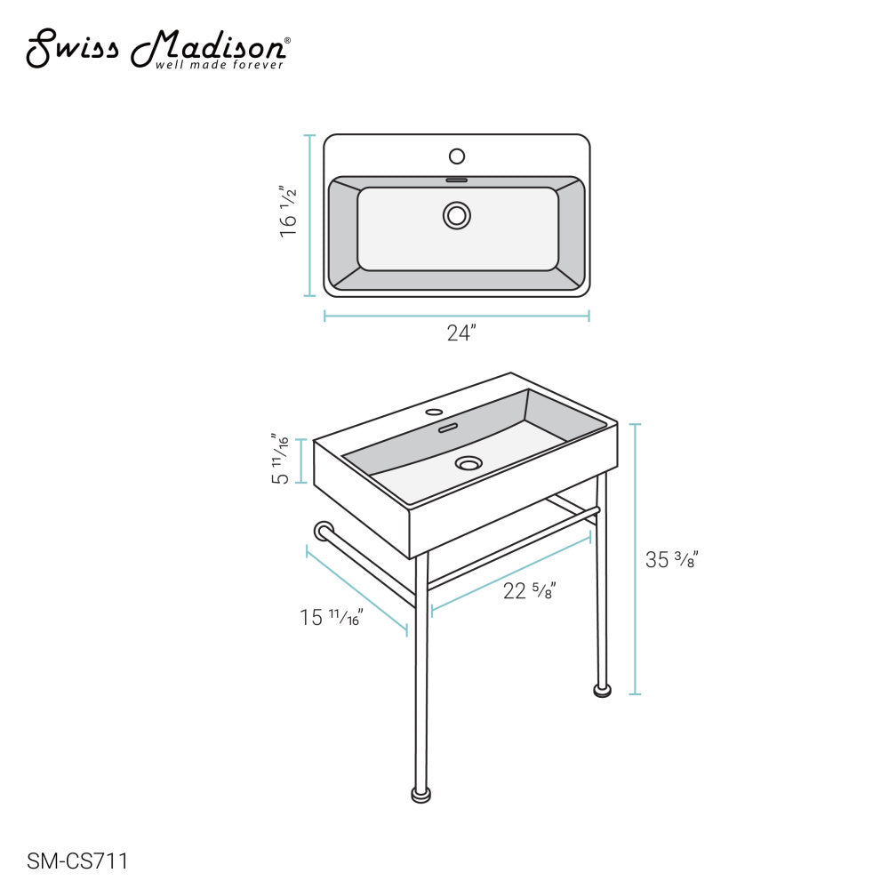 Discover intricate precision and design excellence in the Swiss Madison collection, redefining contemporary bathroom aesthetics. Redefine sophistication in your bathroom with our console sink, merging vintage charm and a minimalist design for a unique allure. Offered in white with a chrome finish.