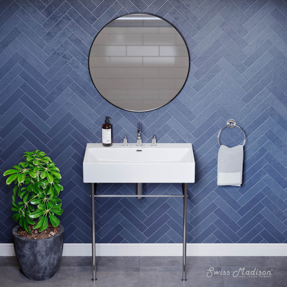 Claire 30" Console Sink White Basin Chrome Legs with 8" Widespread Holes