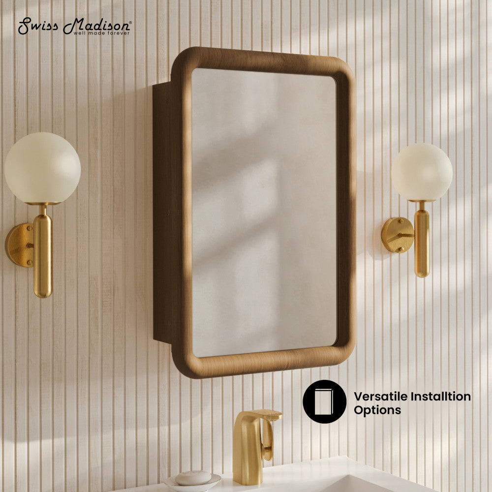 Infuse your home with the joyous essence of the Plaisir collection, where comfort and style converge effortlessly. Combine storage and sophistication with our medicine cabinets, seamlessly integrating into your vanity area while offering practical organization. Offered in brown oak.