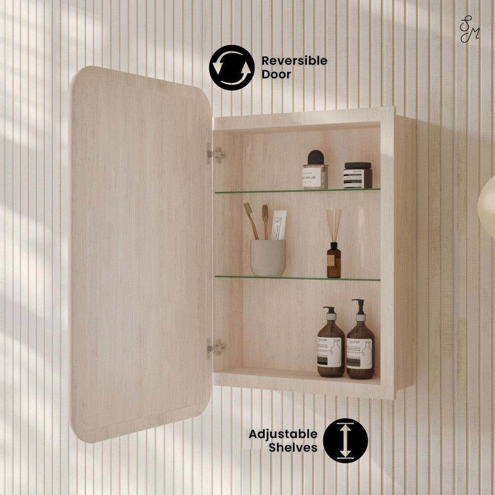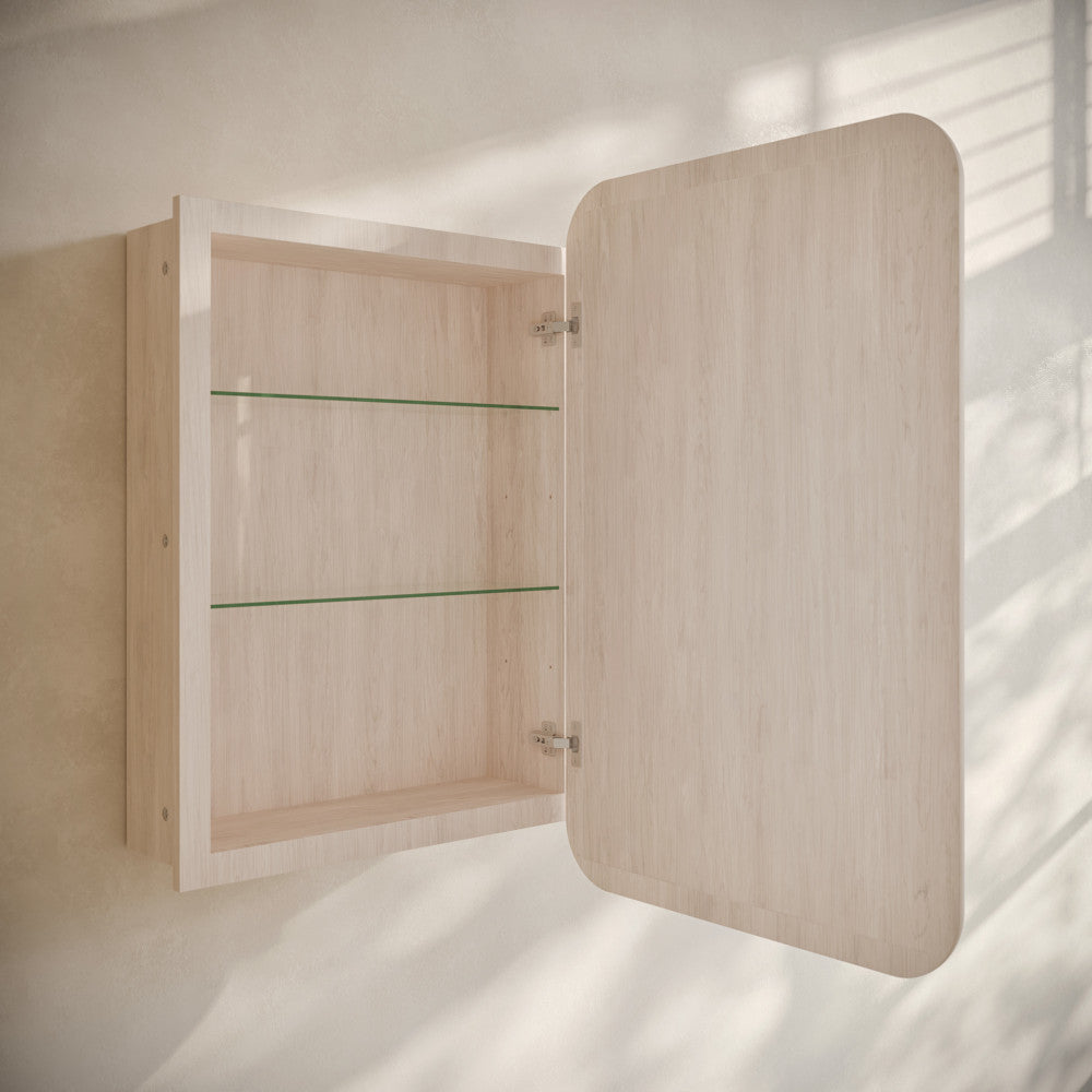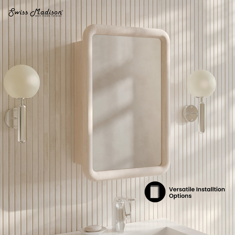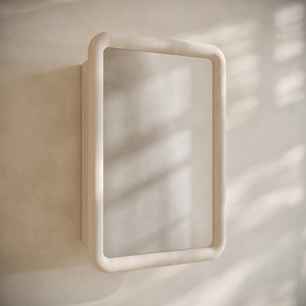 Infuse your home with the joyous essence of the Plaisir collection, where comfort and style converge effortlessly. Combine storage and sophistication with our medicine cabinets, seamlessly integrating into your vanity area while offering practical organization. Offered in white oak.