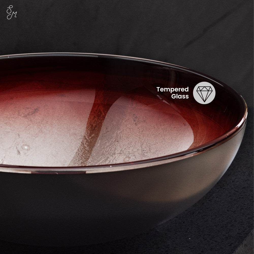 Cascade 16.5 Glass Vessel Sink with Faucet, Ember Red