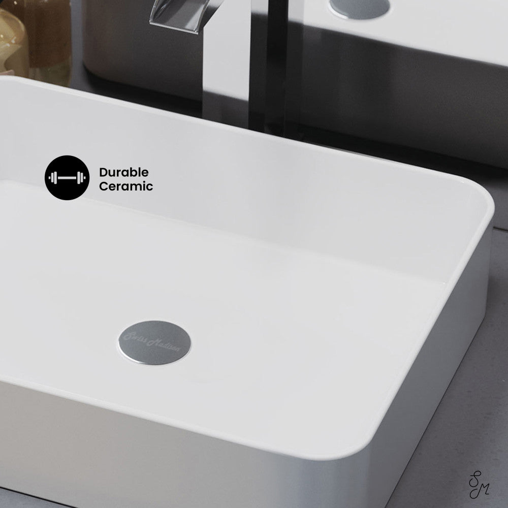 Discover the allure of modern opulence with the Concorde collection, where sleek designs and luxurious materials evoke a sense of opulence. Elevate your bathroom aesthetic with our vessel sinks, blending artistry and utility to create a stunning statement piece. Offered in white with a glossy finish.