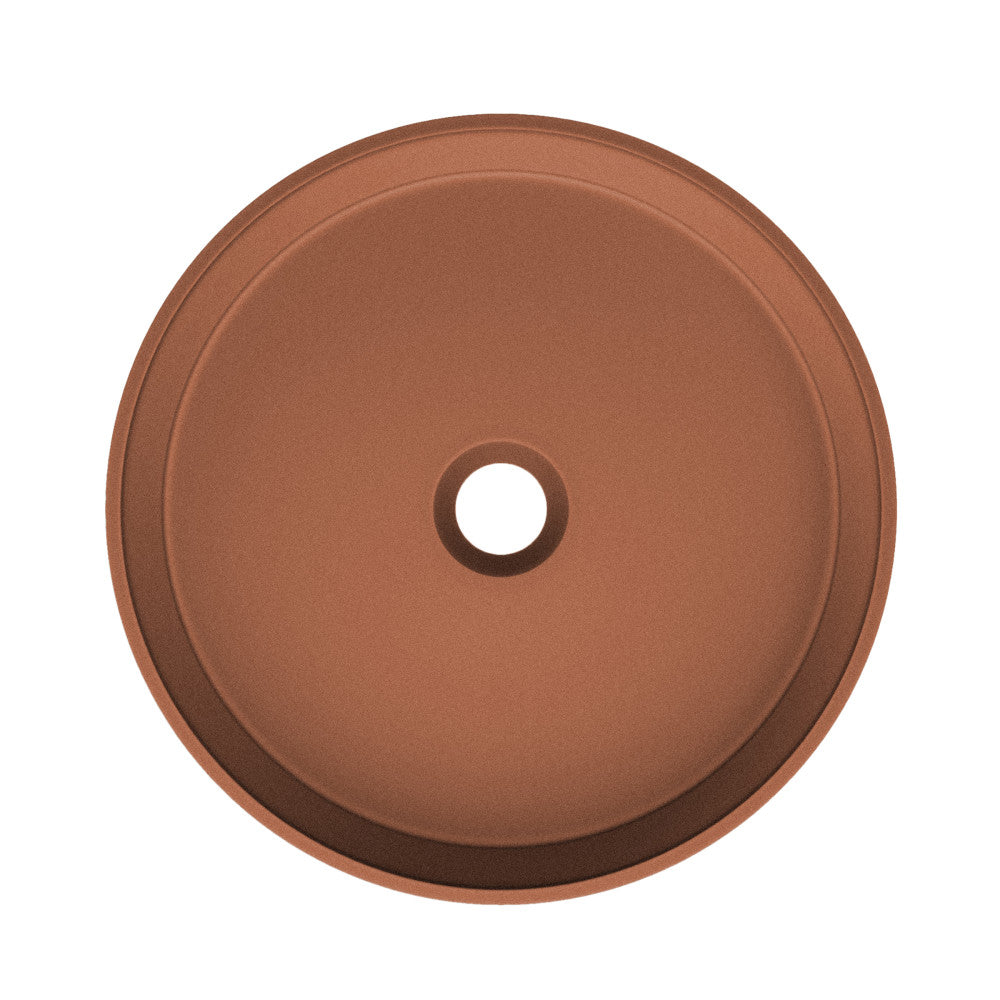 Discover the Lisse collection, where smooth surfaces and sleek lines create an atmosphere of streamlined elegance. Elevate your bathroom aesthetic with our vessel sinks, blending artistry and utility to create a stunning statement piece. Offered in Terracotta with a Matte Finish.