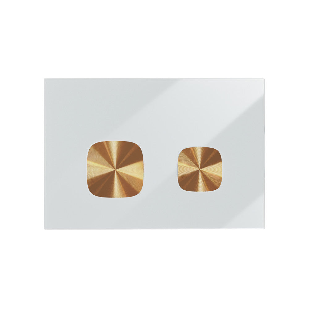 Elevate your space with the elegance of glass in the Verre collection, where transparency and sophistication shine. Wall Actuators provides a refined style for your back-to-wall and wall mounted toilets. Offered in white with a glossy finish and gold hardware