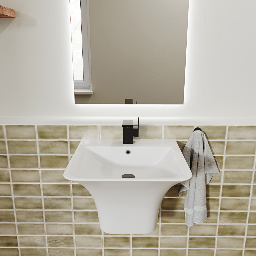 Embrace geometric balance with the Carre collection, where clean lines and modern design principles take center stage. Embrace contemporary simplicity with our wall-mount sinks, combining space-efficient design and innovative aesthetics creating a sleek and functional environment. Offered in white with a glossy finish.