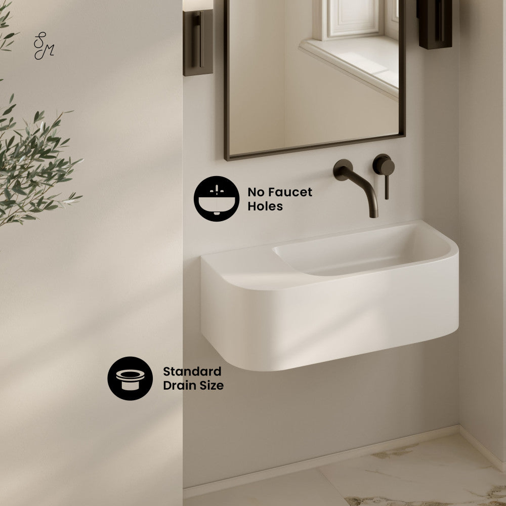 - No Faucet Holes: Designed for wall-mounted faucets.