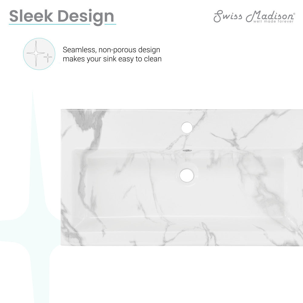 Embrace timeless elegance with the Voltaire collection, fusing classic charm with contemporary comfort. Embrace contemporary simplicity with our wall-mount sinks, combining space-efficient design and innovative aesthetics creating a sleek and functional environment. Offered in marbled white with a glossy finish.
