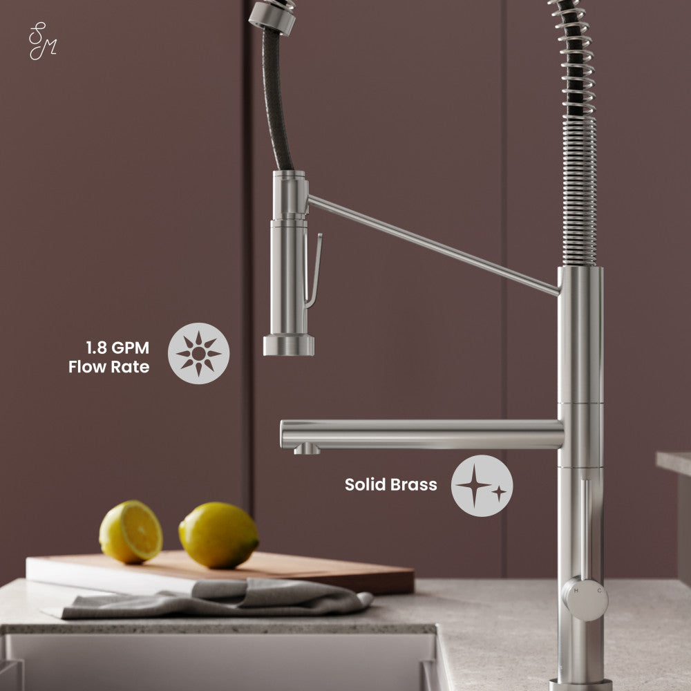 Nouvet Single Handle, Pull-Down Kitchen Faucet with Pot Filler in Brushed Nickel