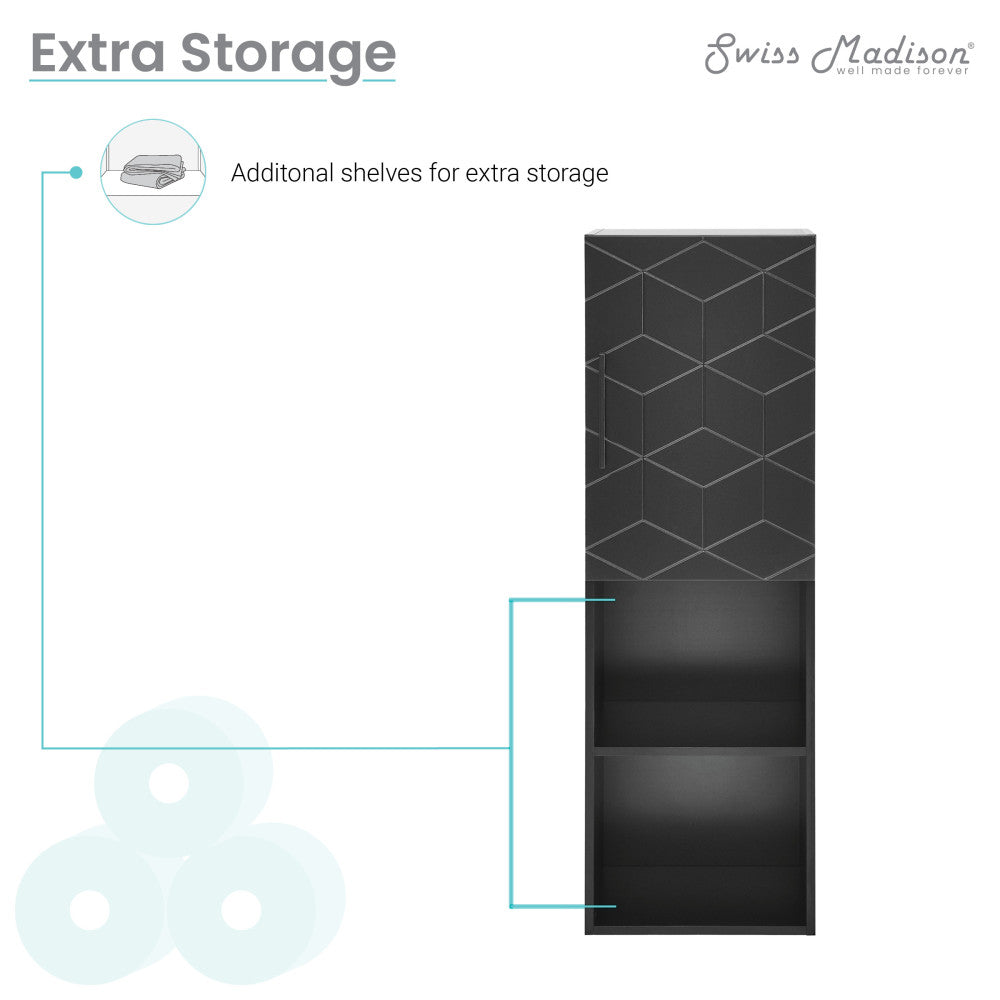 - Open Shelf and Closet: The cabinet door has soft-close hinges and provides additional open and closed storage space.