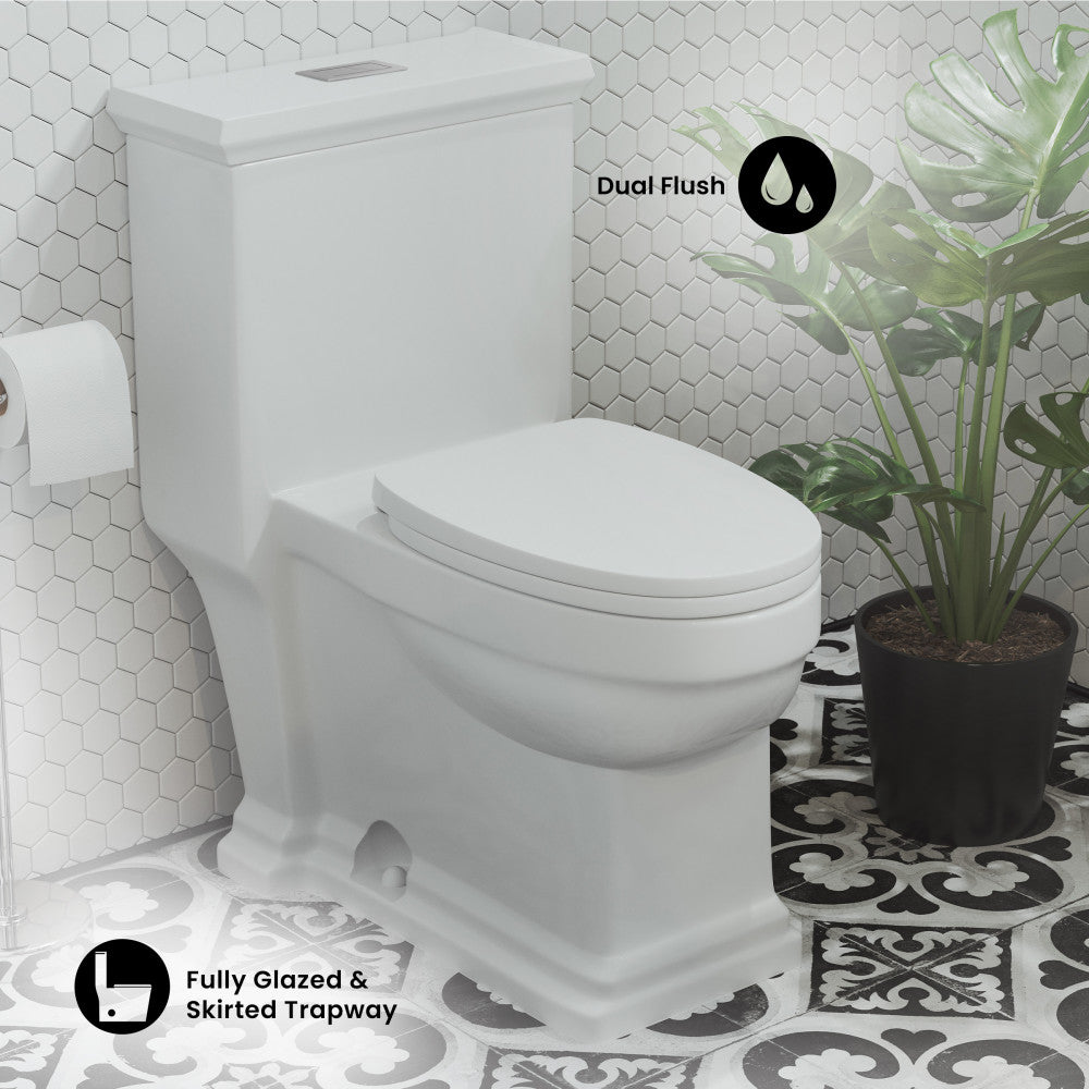 - Fully Glazed and Skirted Trapway: The skirted trapway offers hidden plumbing creating an elevated and luxurious design with a smooth finish for easy cleaning. The fully glazed trapway prevents clogs and keeps water flowing freely.
