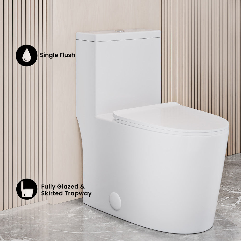 - Fully Glazed and Skirted Trapway: The skirted trapway offers hidden plumbing creating an elevated and luxurious design with a smooth finish for easy cleaning. The fully glazed trapway prevents clogs and keeps water flowing freely.