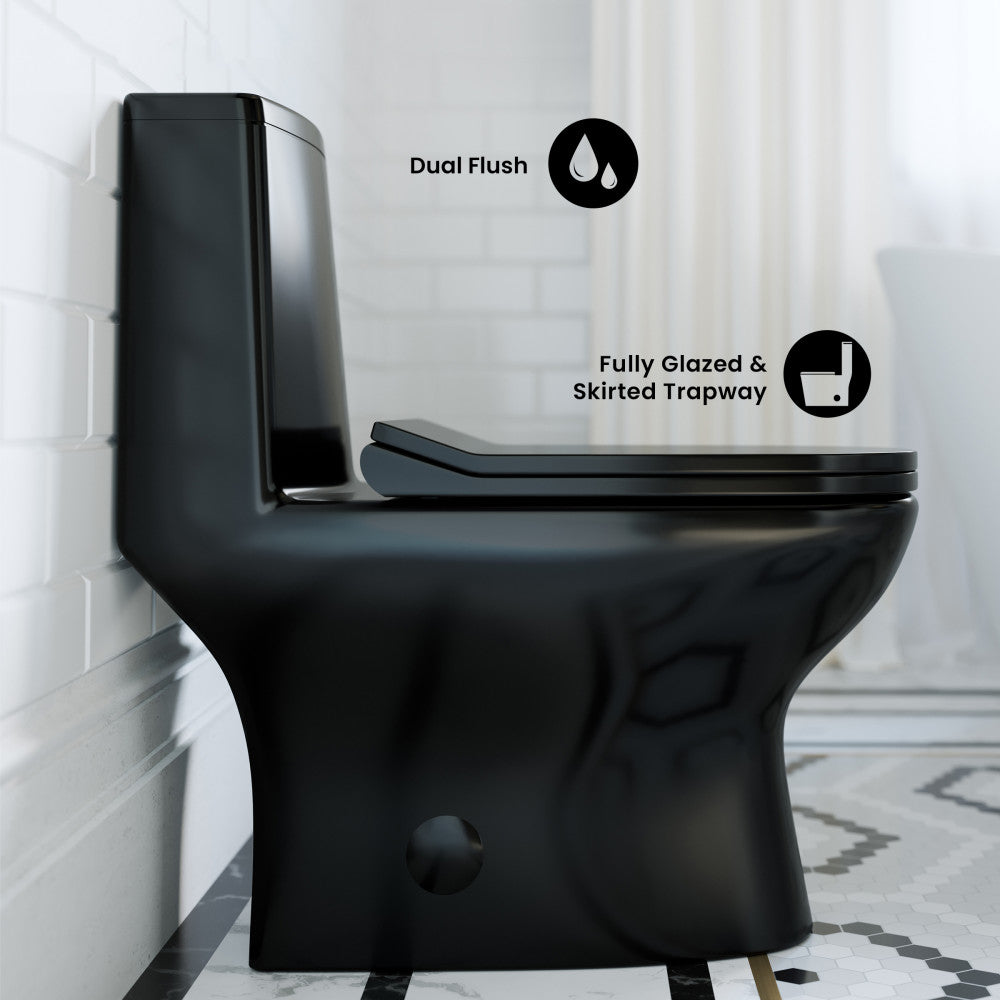 Ivy One Piece Toilet Dual Vortex Flush in Glossy Black 1.1/1.6 gpf