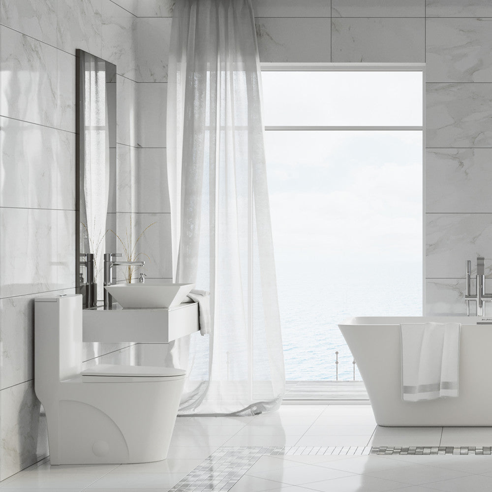 - Fully Glazed and Skirted Trapway: The skirted trapway offers hidden plumbing creating an elevated and luxurious design with a smooth finish for easy cleaning. The fully glazed trapway prevents clogs and keeps water flowing freely.