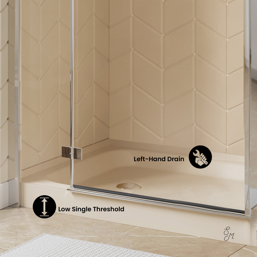 Voltaire 60" x 36" Single-Threshold, Left-Hand Drain, Shower Base in Biscuit