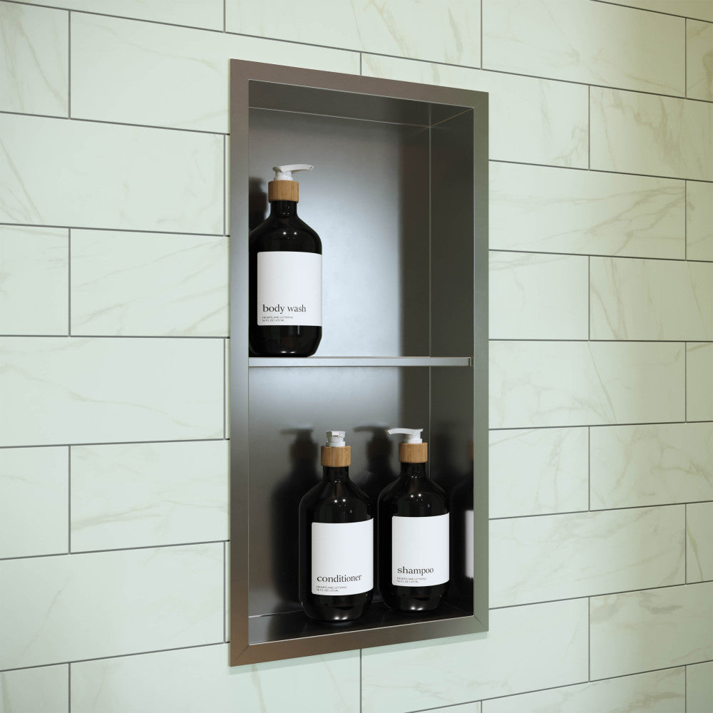 Voltaire 12" x 24" Stainless Steel Double Shelf Wall Niche in Matte Chrome