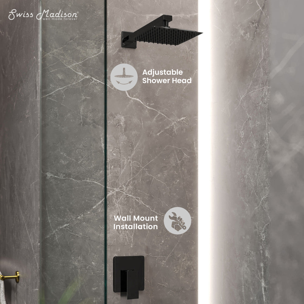 Concorde Single-Handle 1 Spray 8" Wall Mounted Fixed Shower Head in Matte Black (Valve Included)